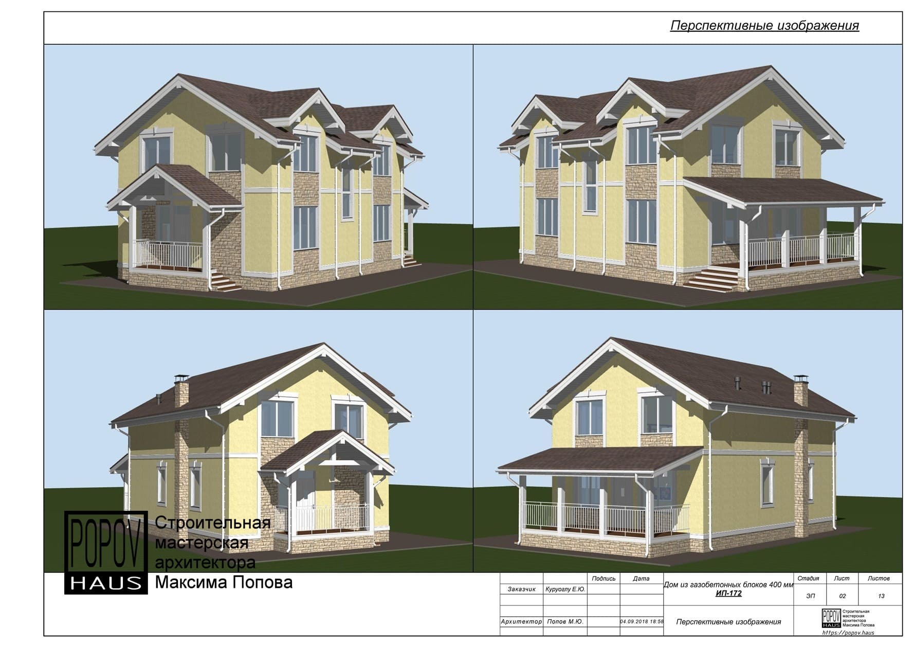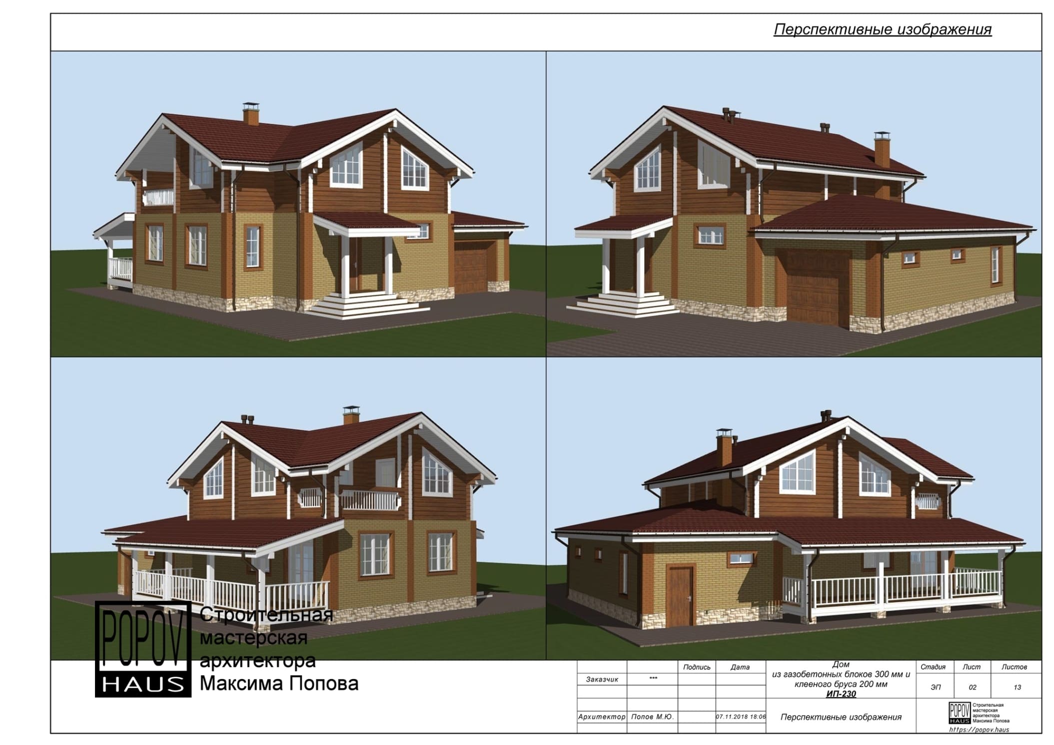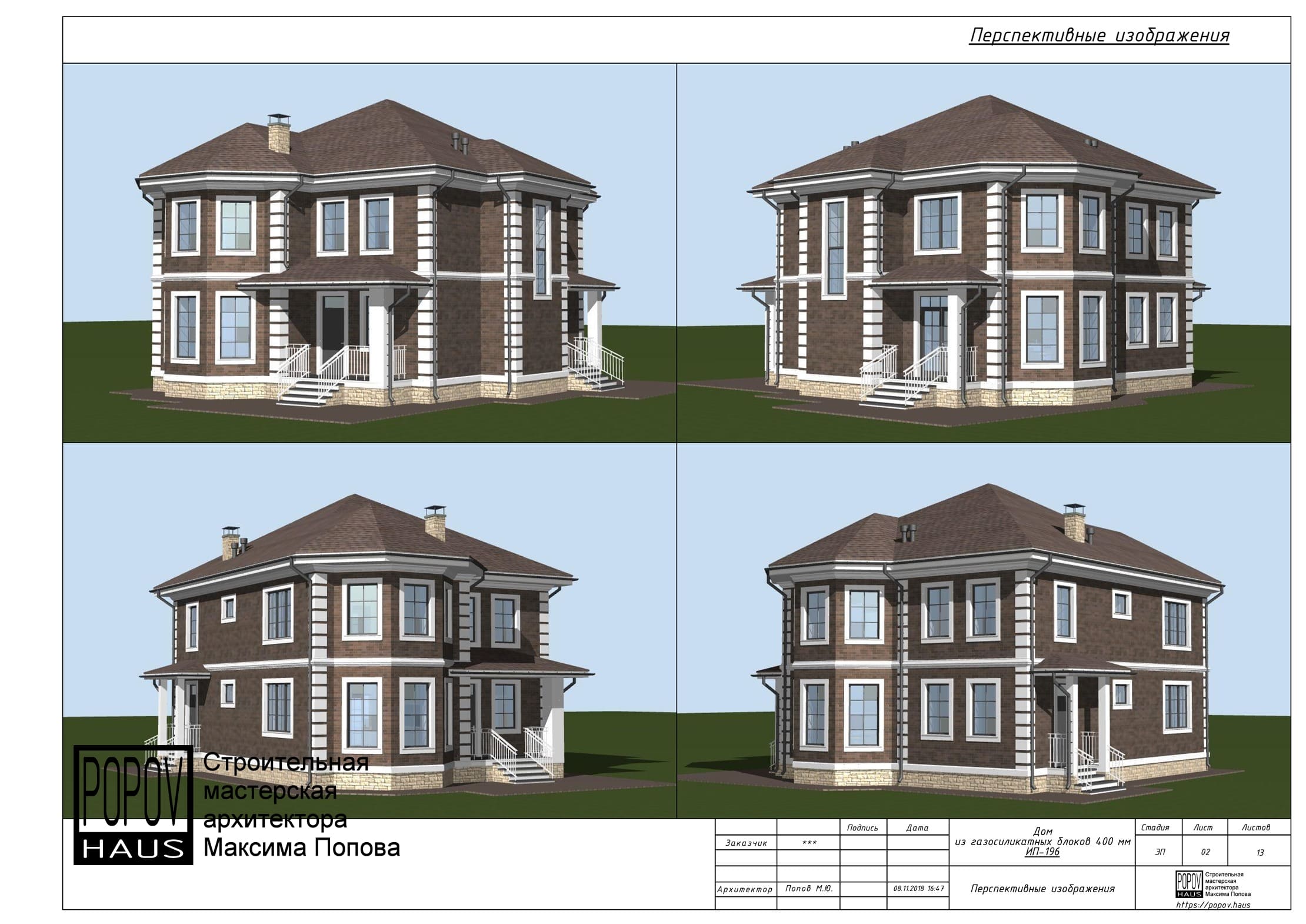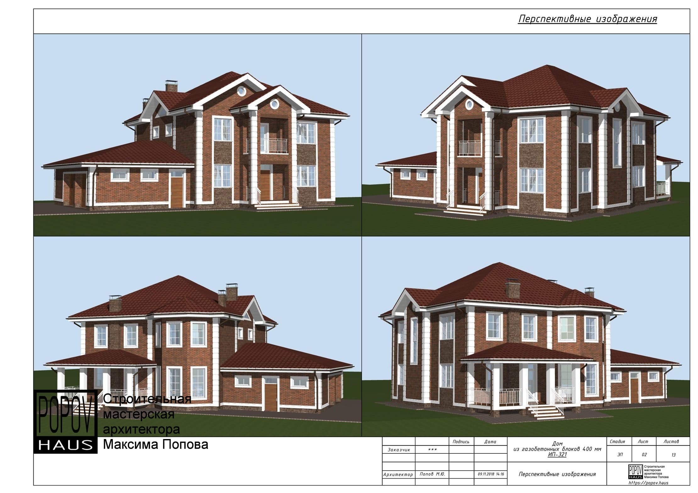 планировки, фасады, внешние виды с разных углов обзора и др.