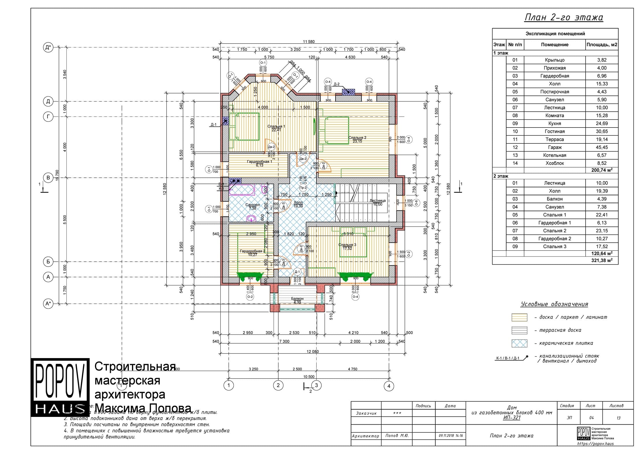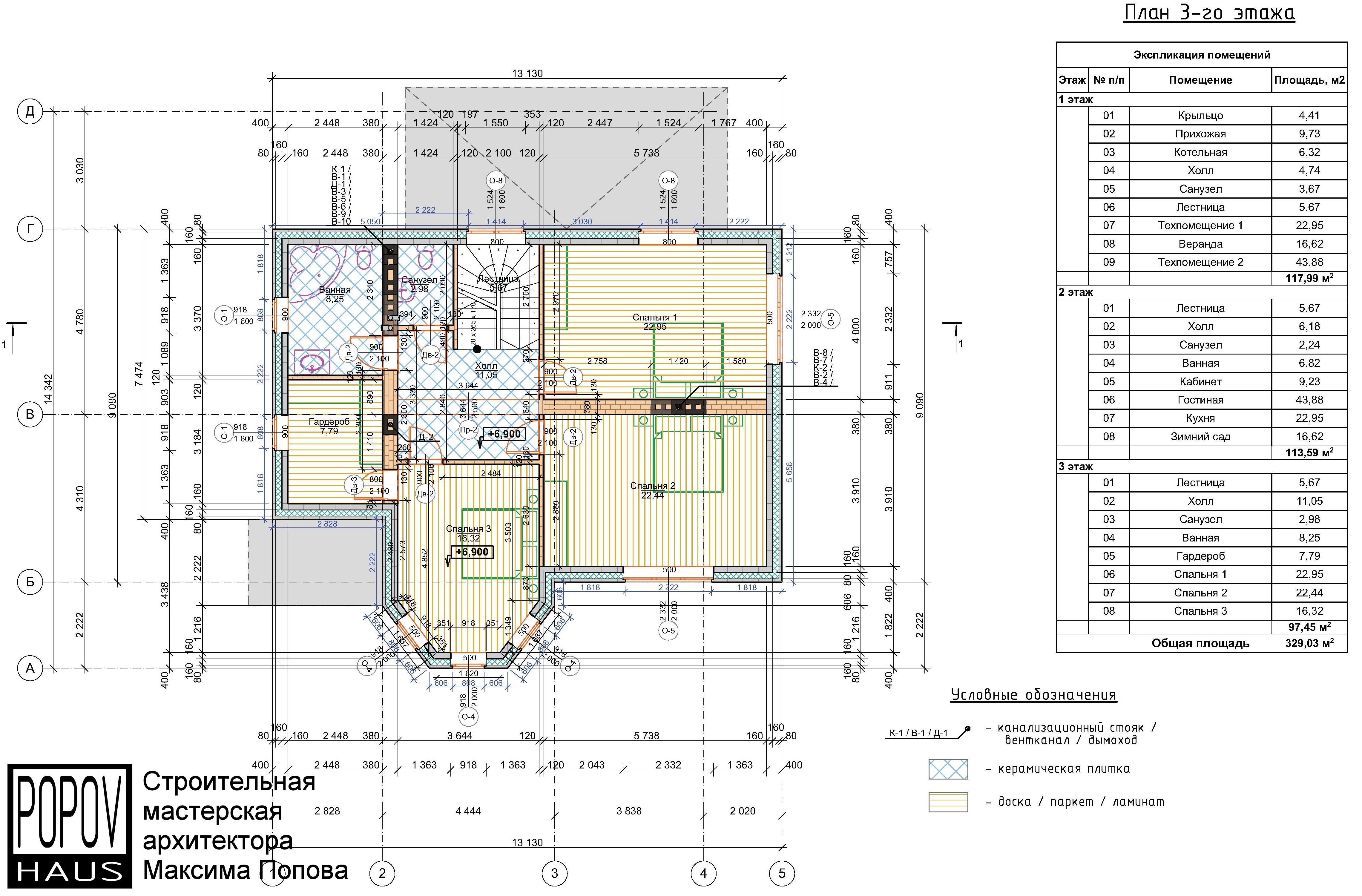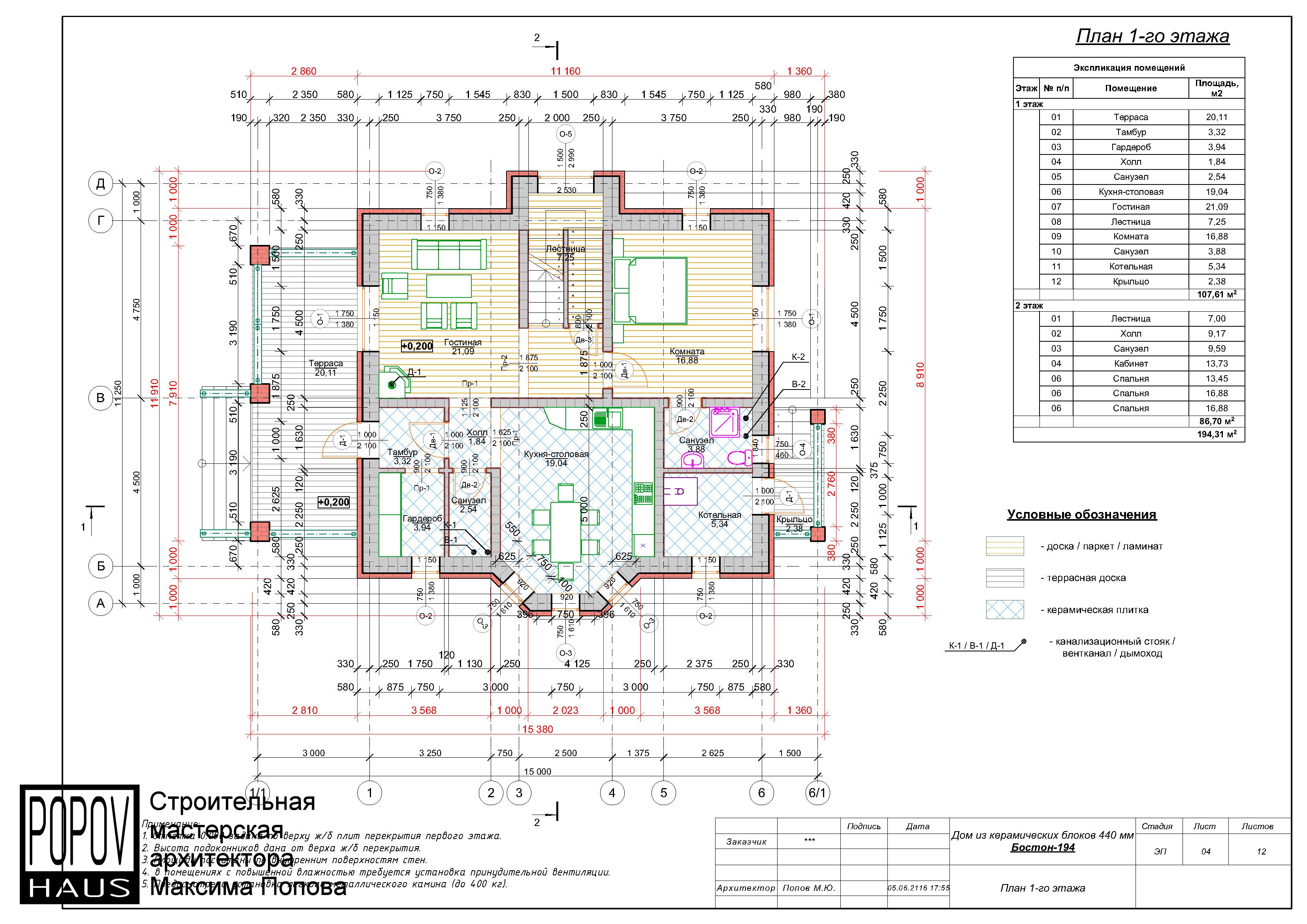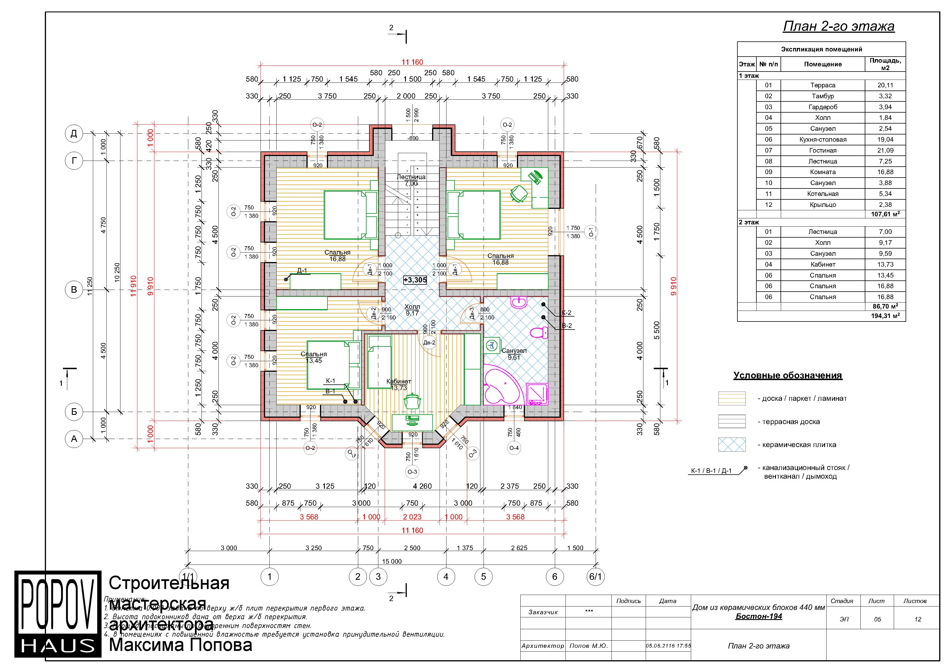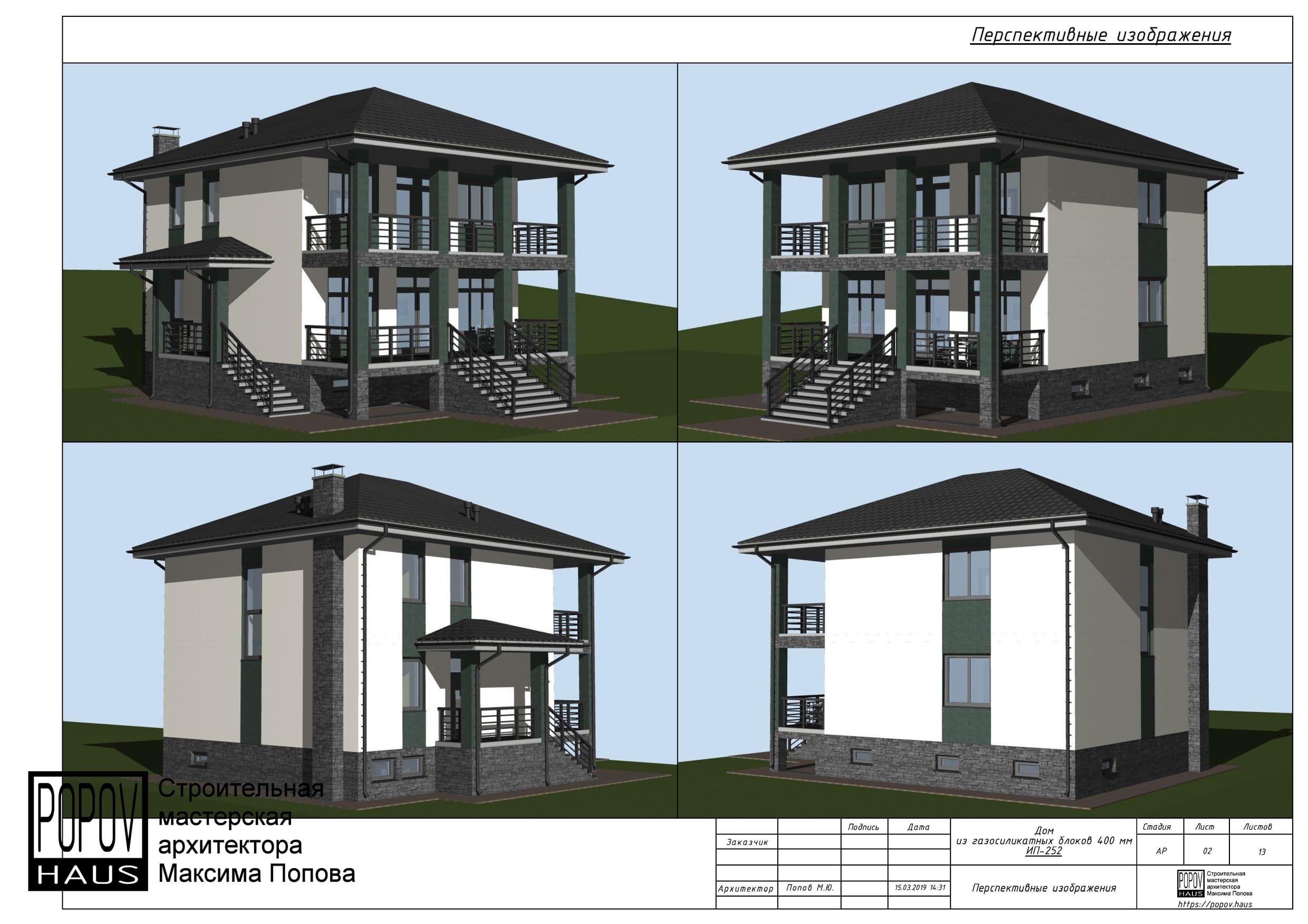 состоящий из 12-15 листов с чертежами всех основных параметров и характеристик строения: