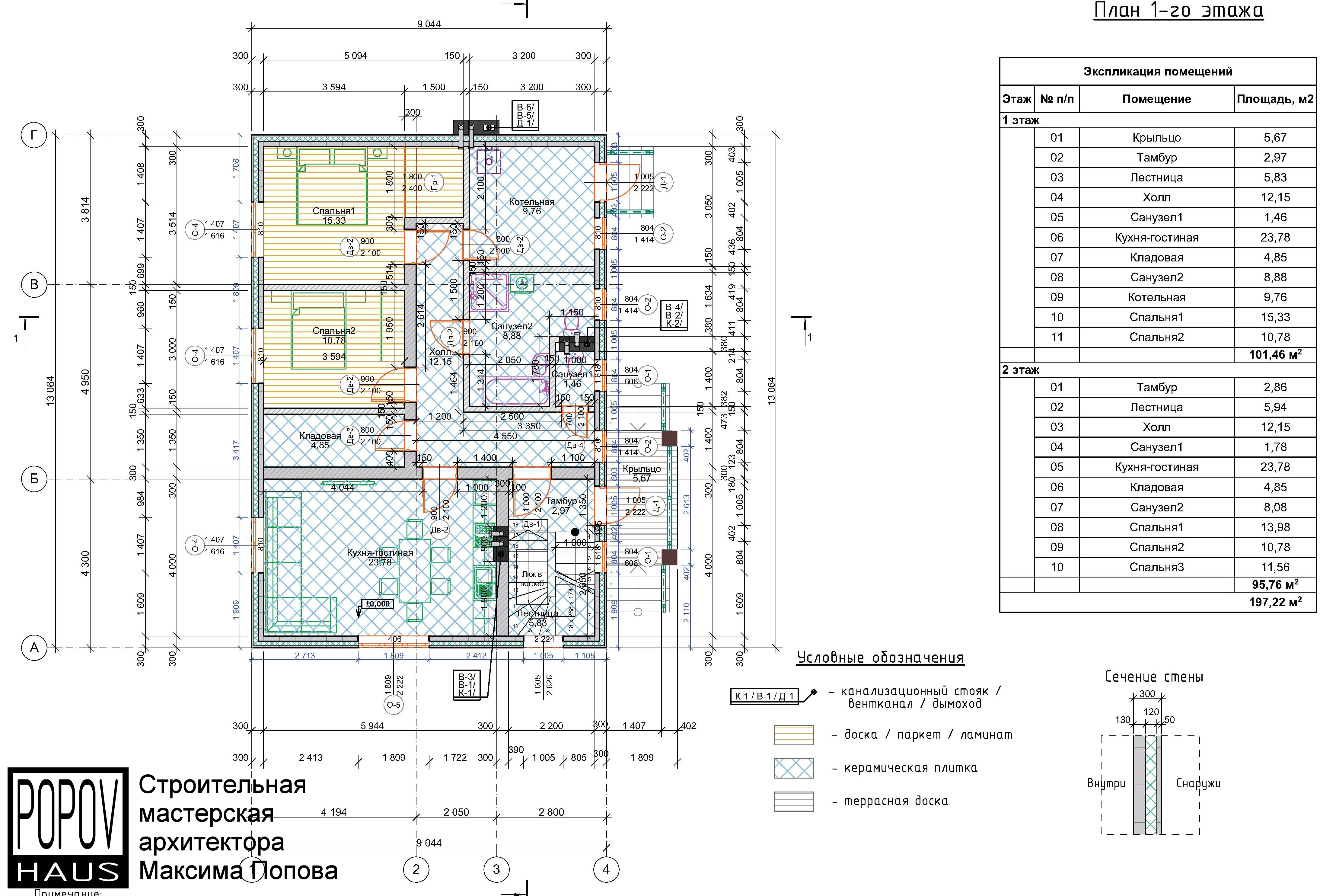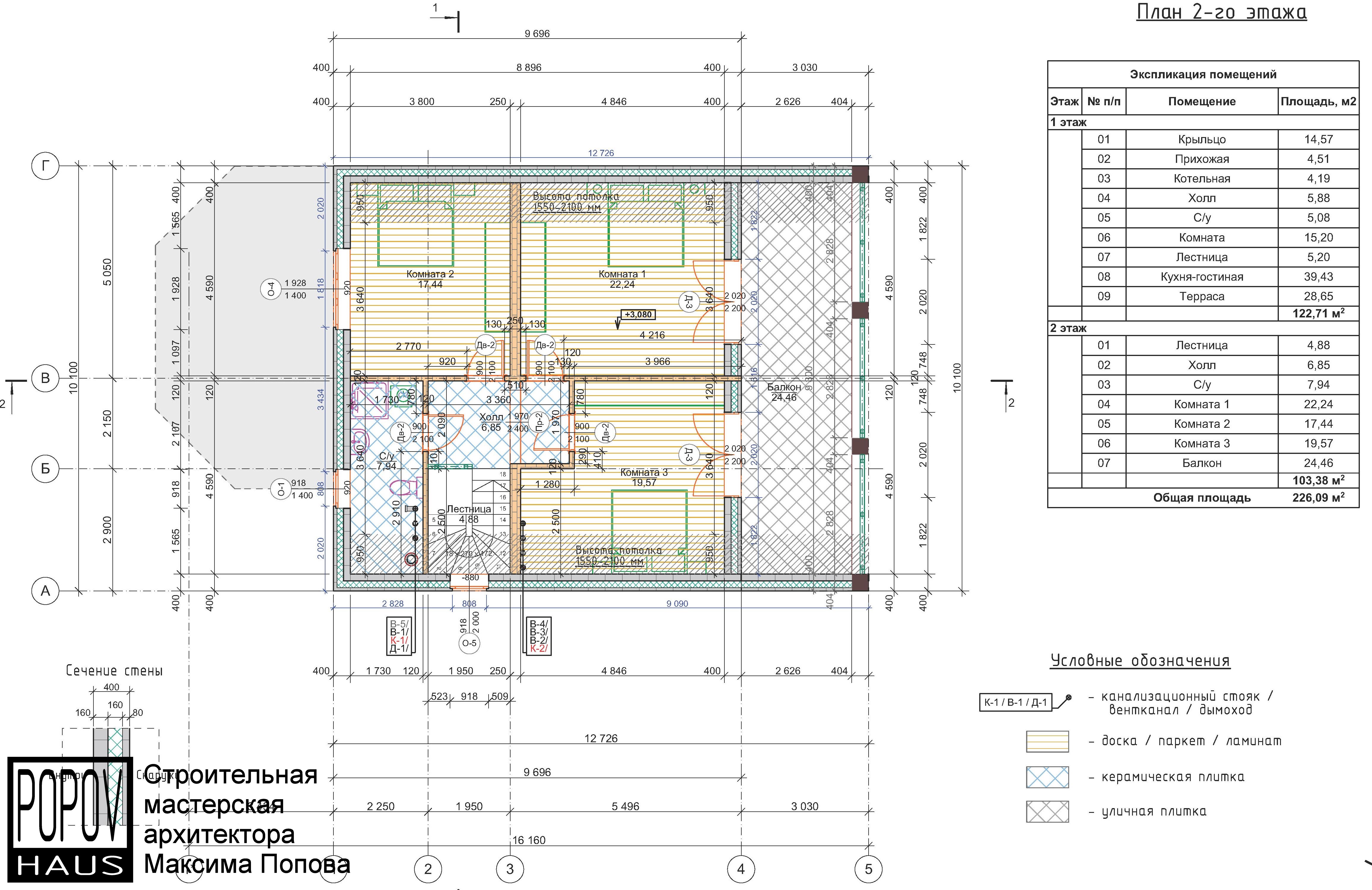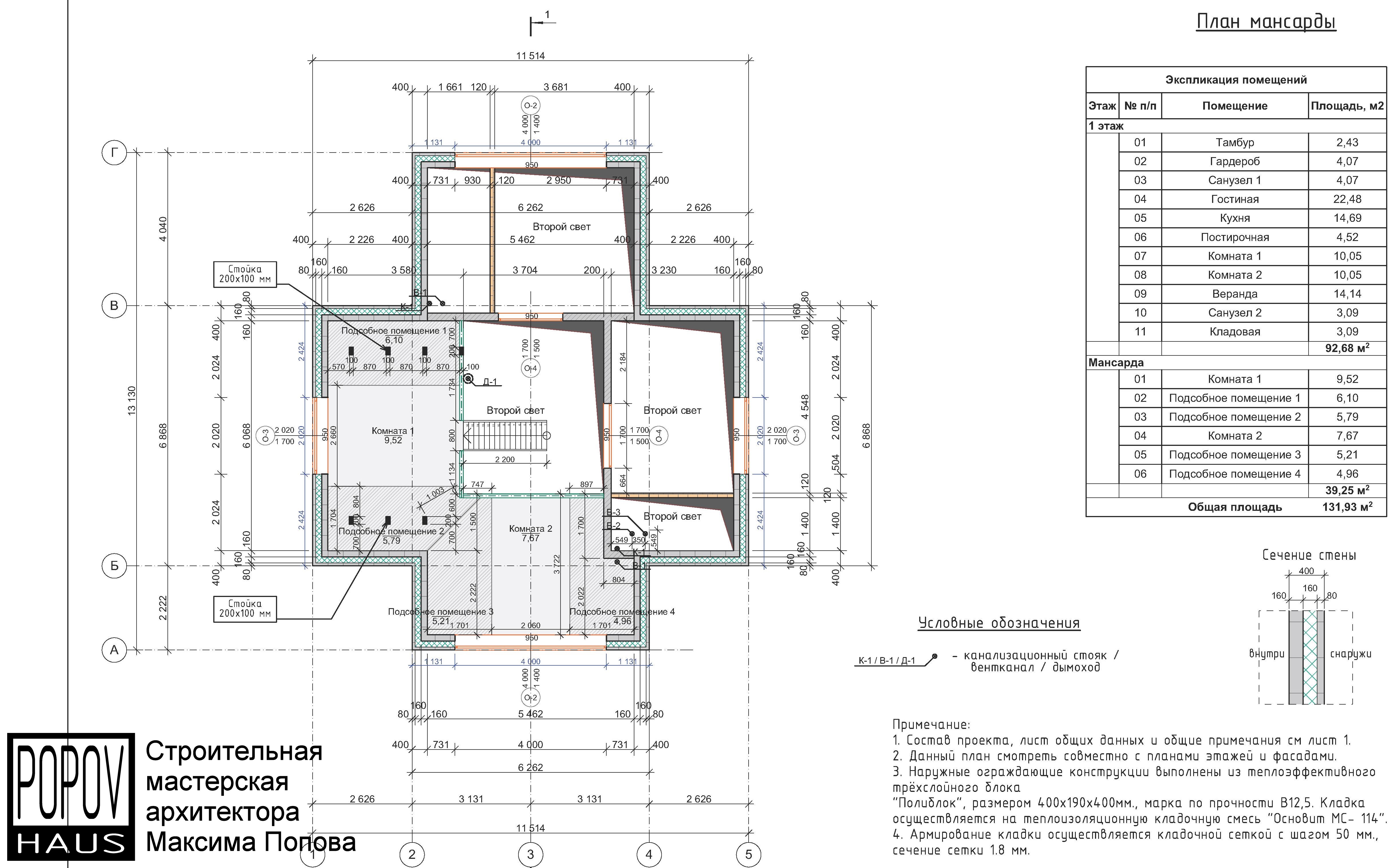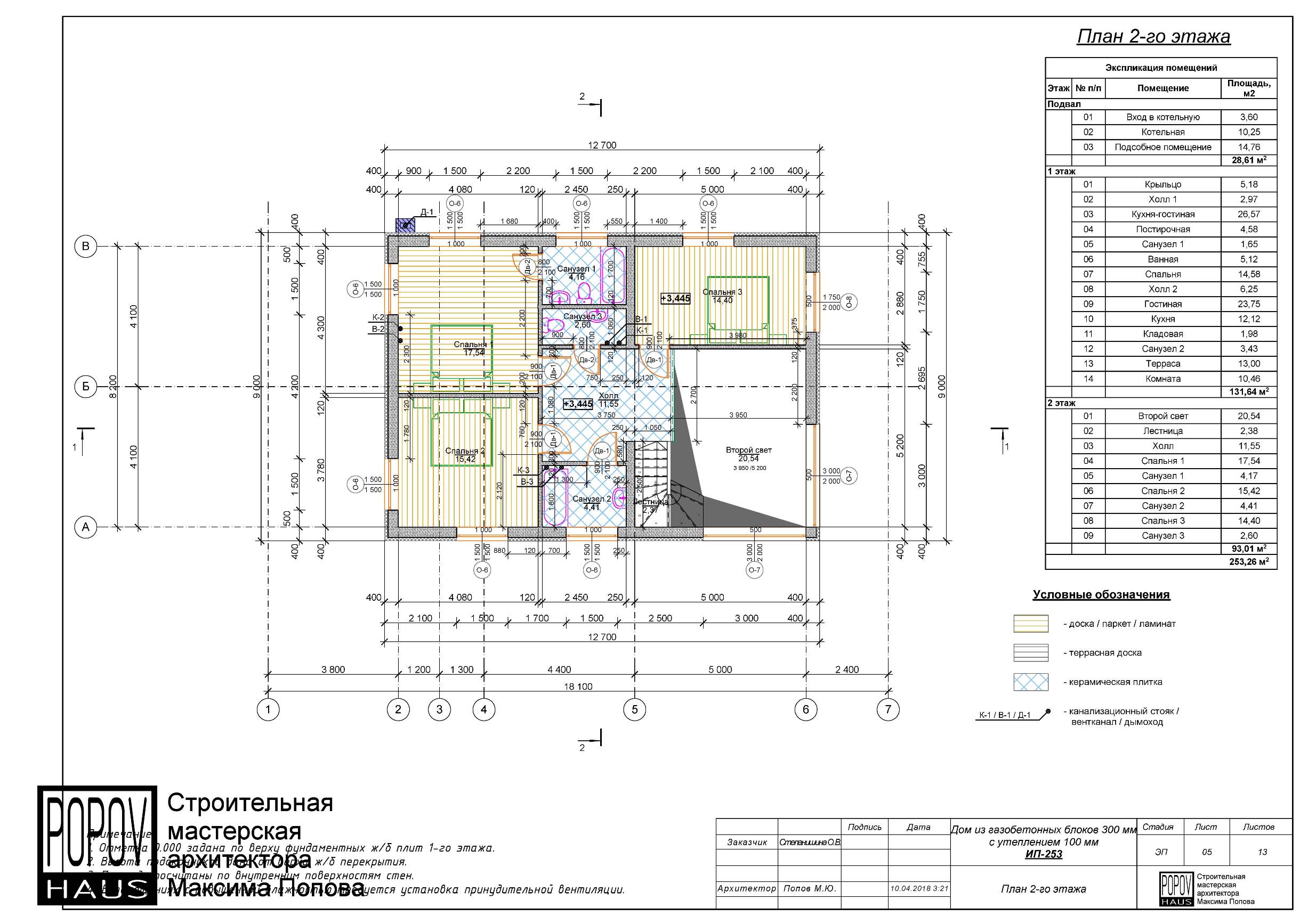 состоящий из 12-15 листов с чертежами всех основных параметров и характеристик строения:
