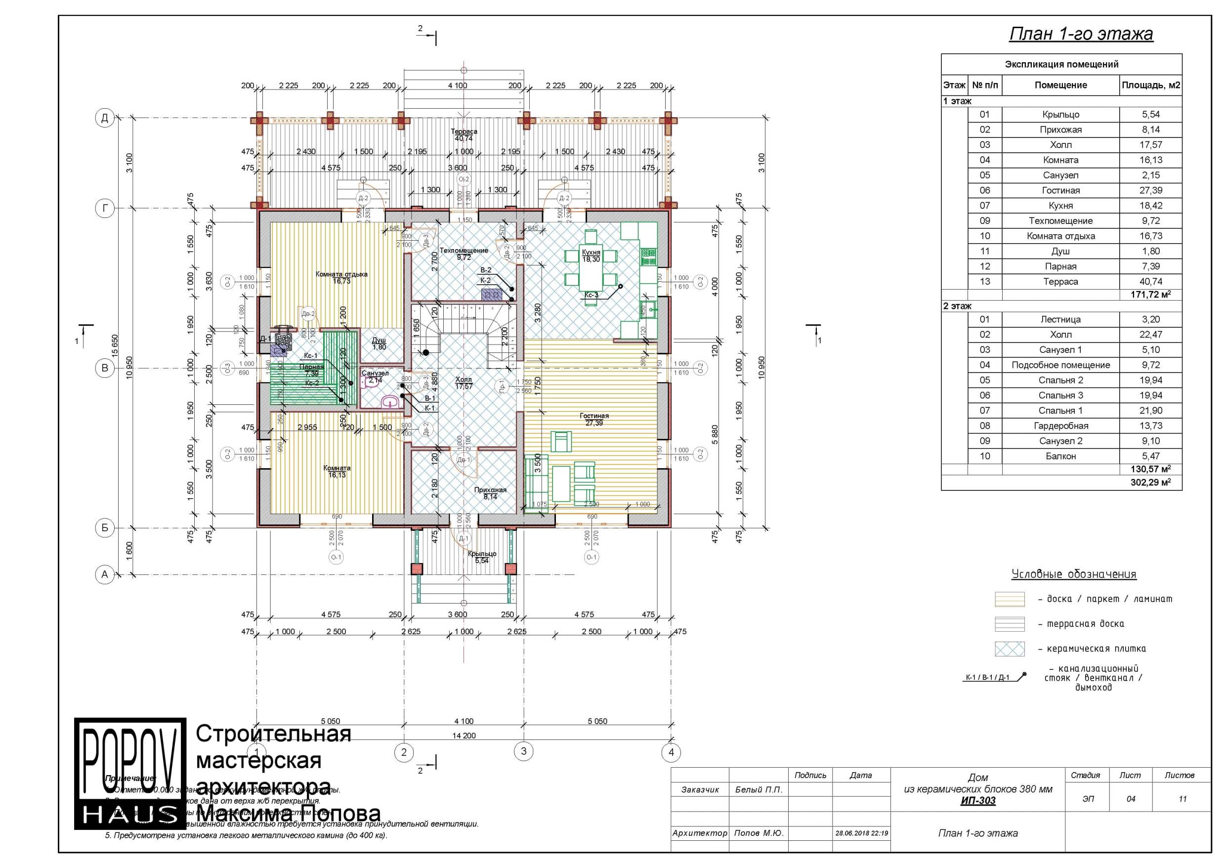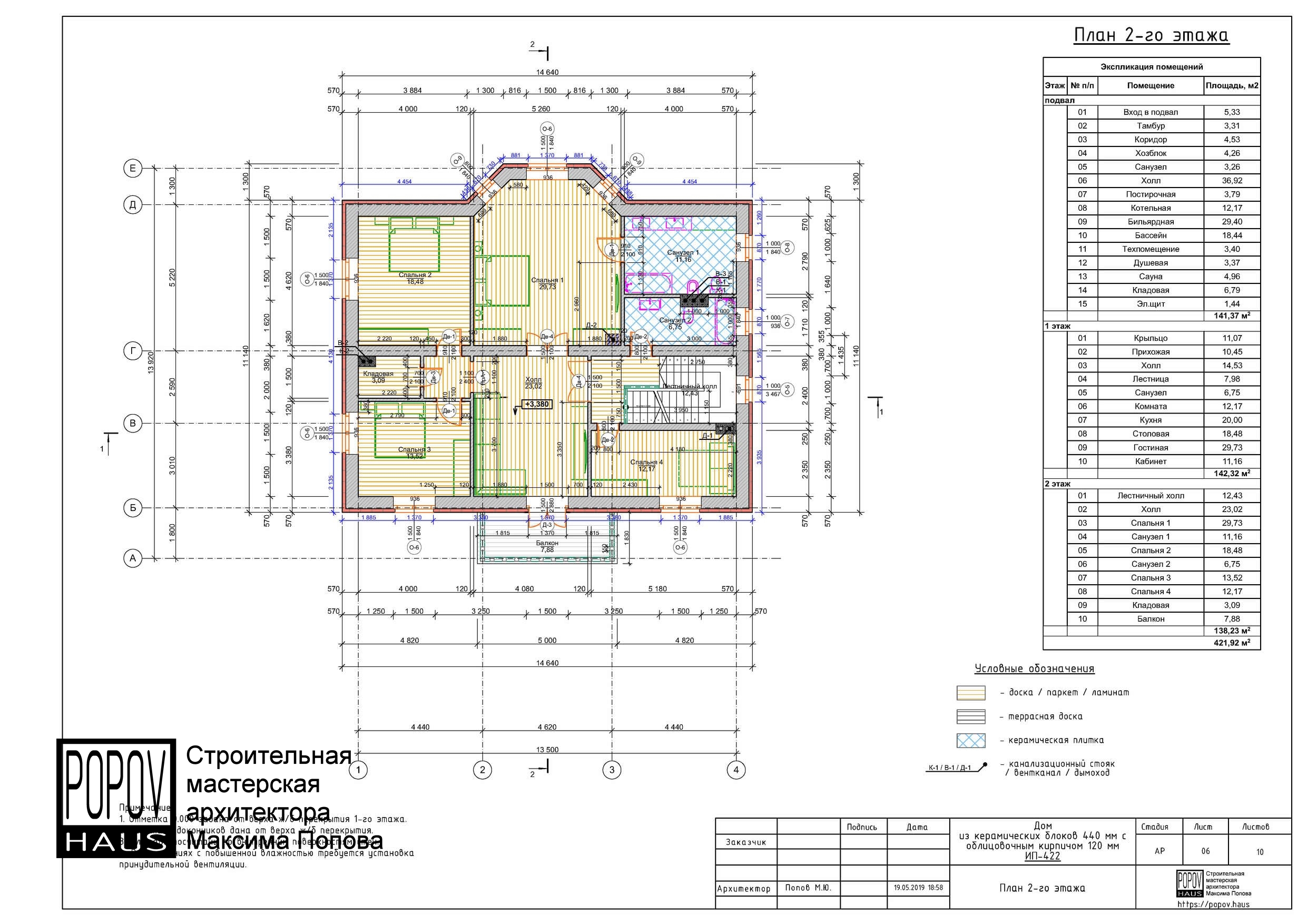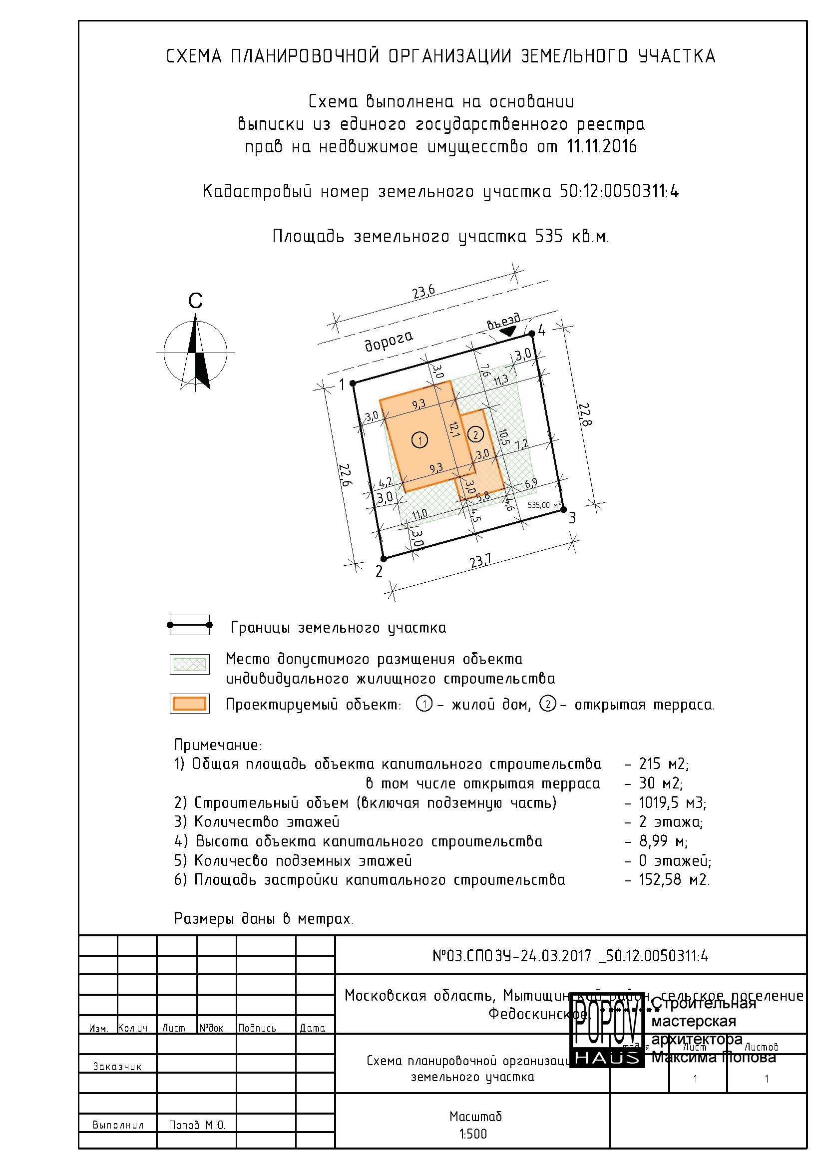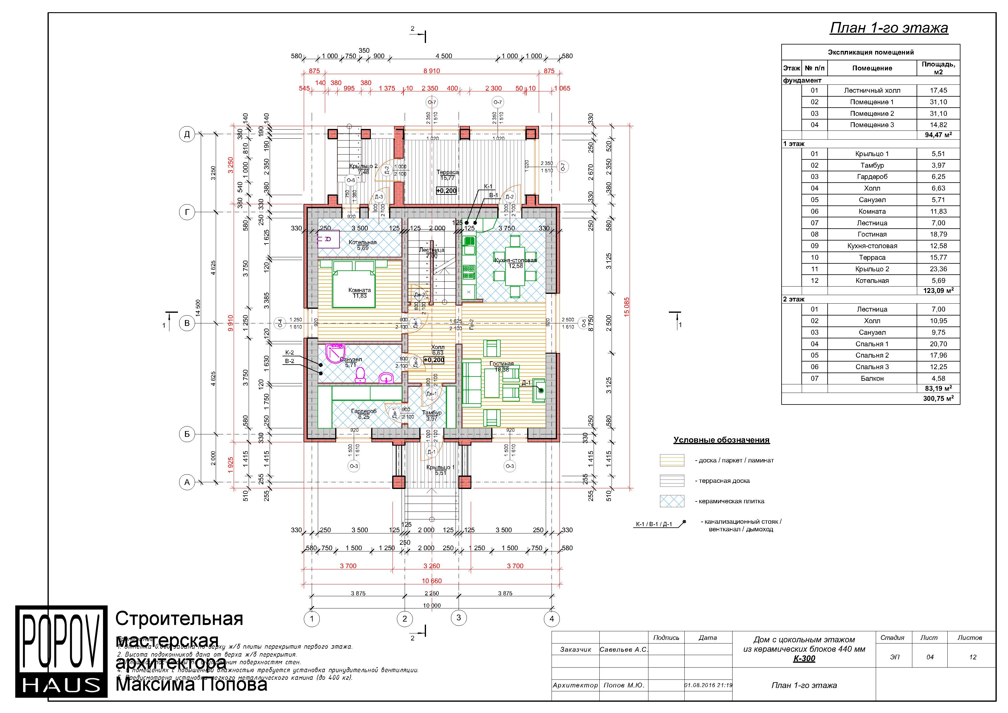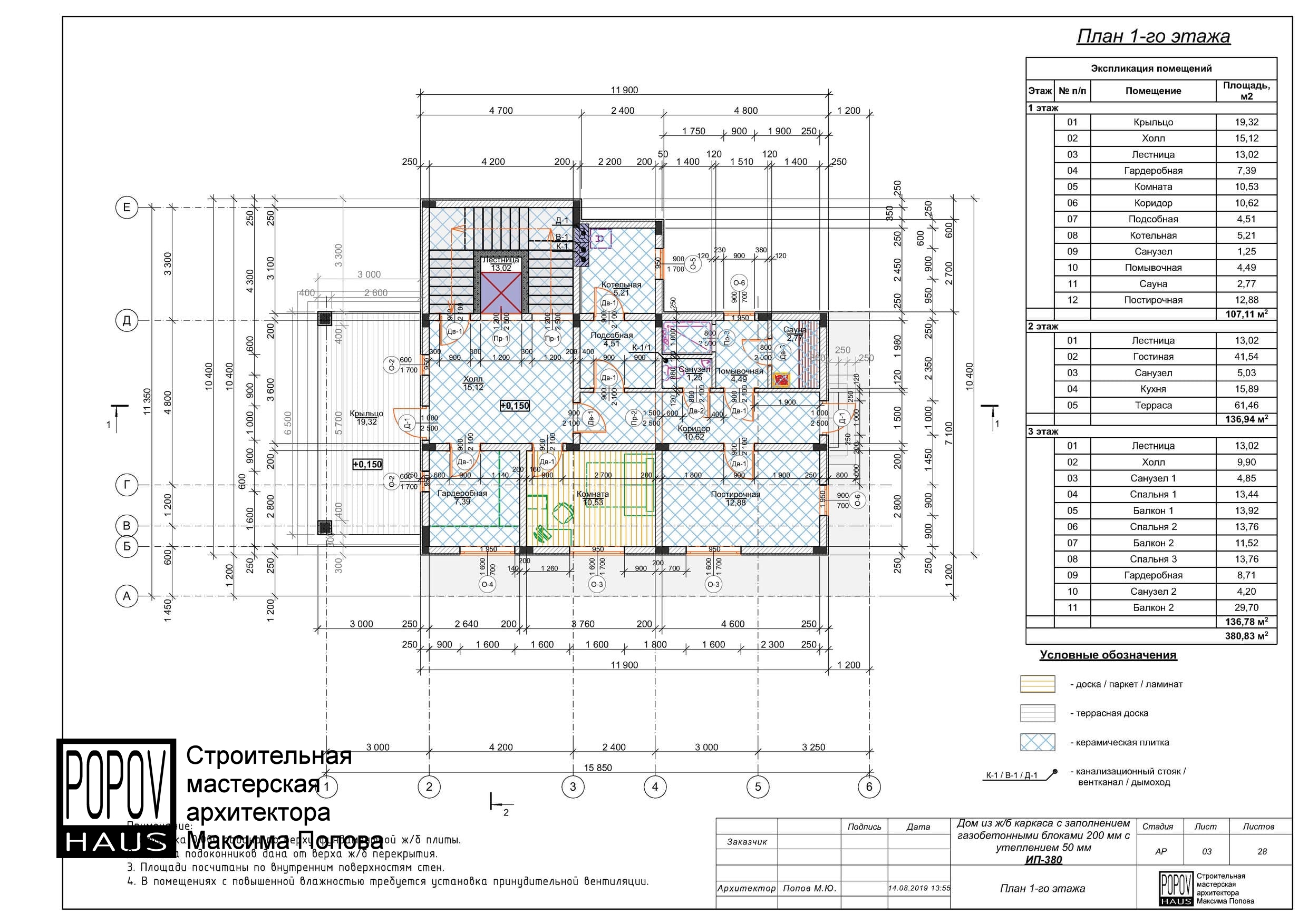 состоящий из 12-15 листов с чертежами всех основных параметров и характеристик строения: