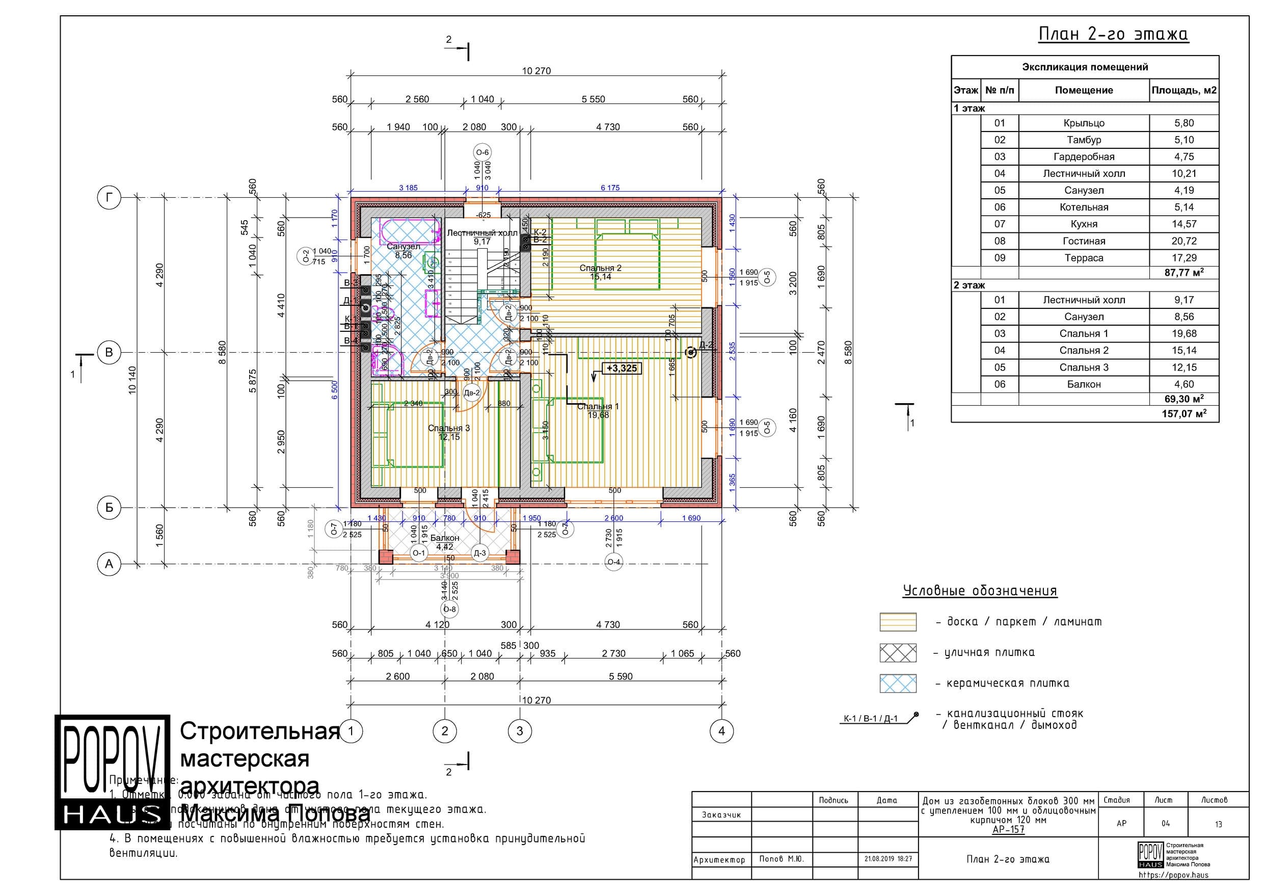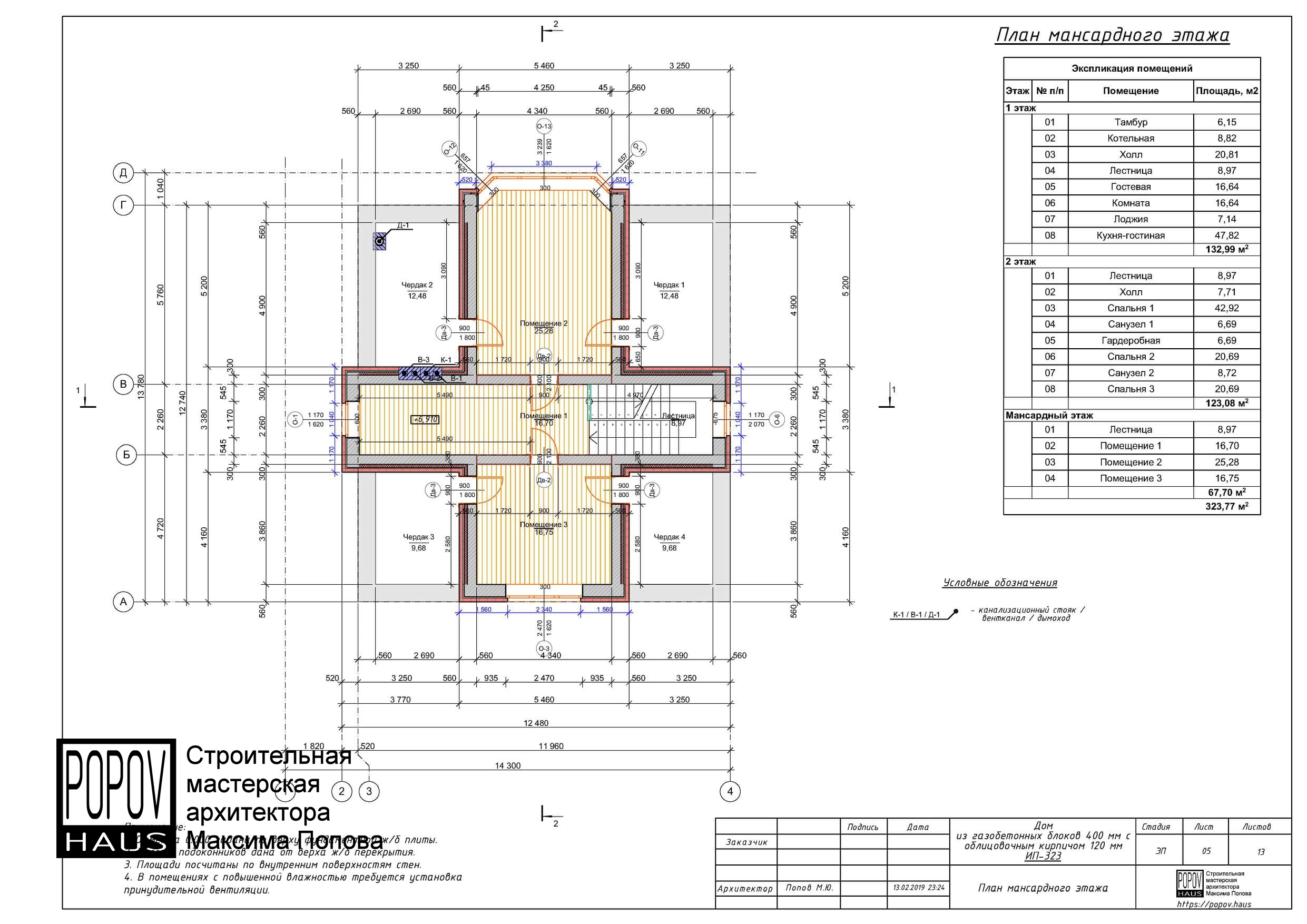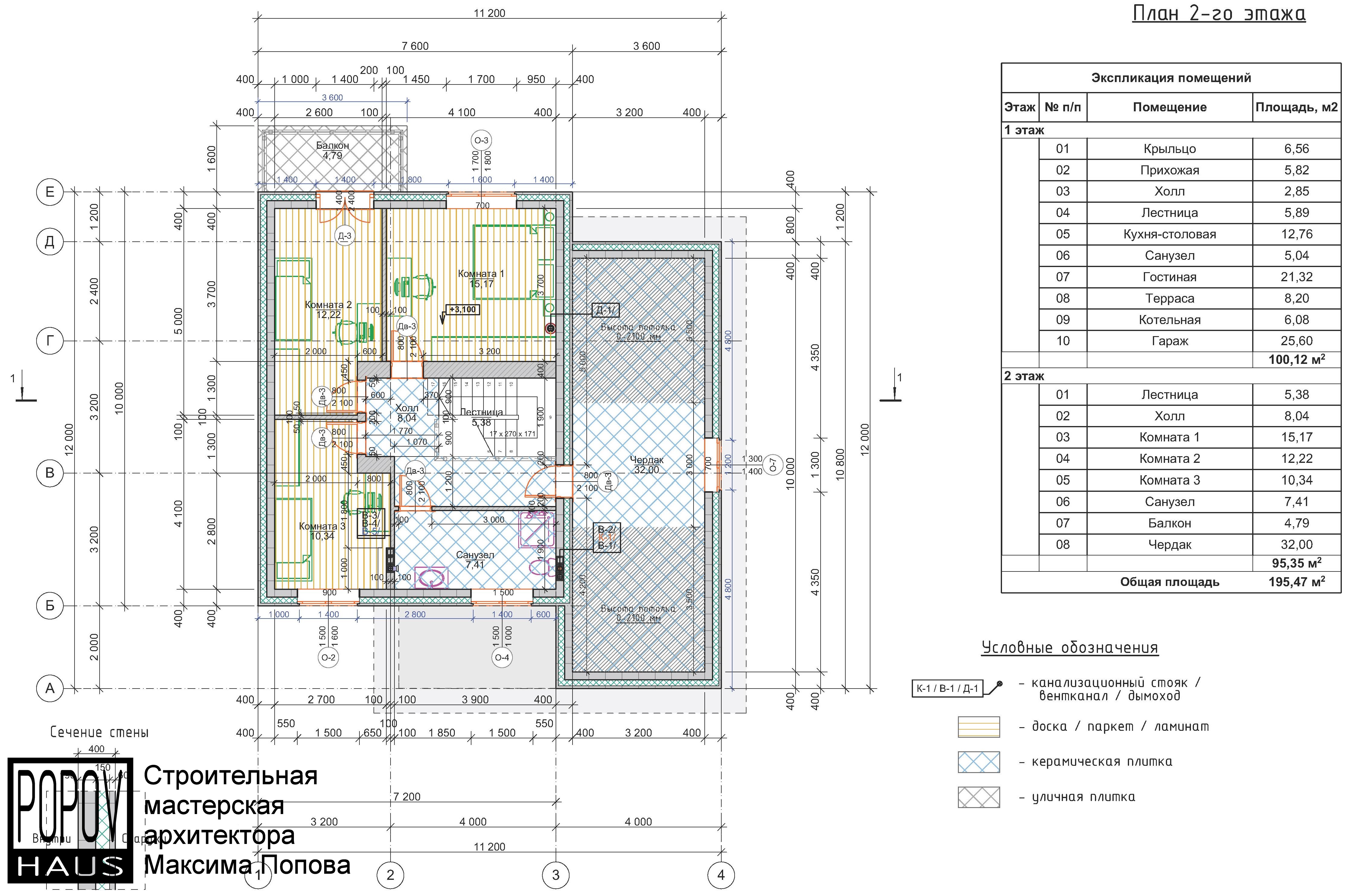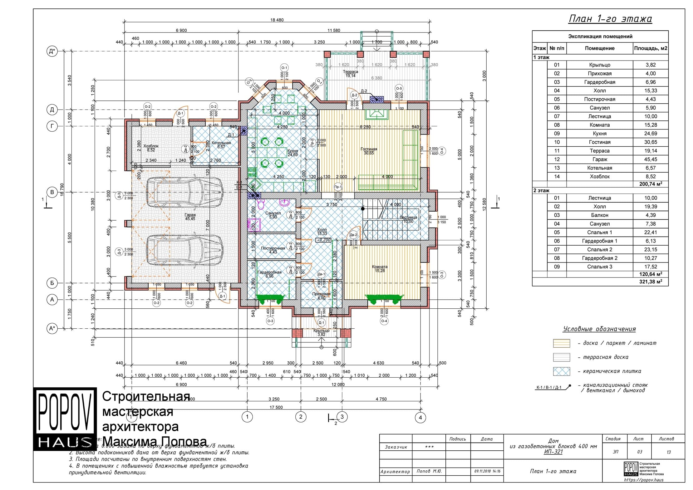 состоящий из 12-15 листов с чертежами всех основных параметров и характеристик строения: