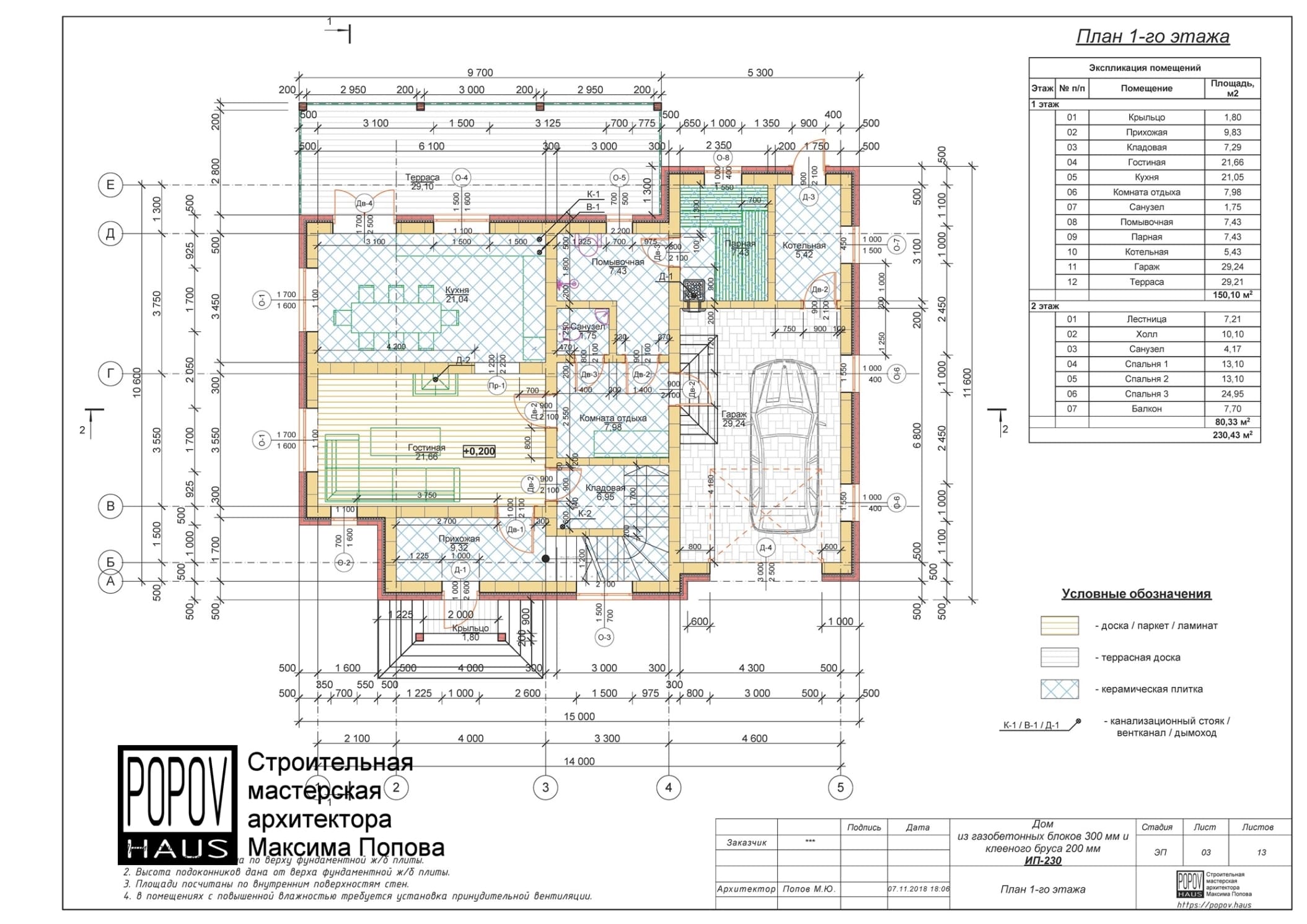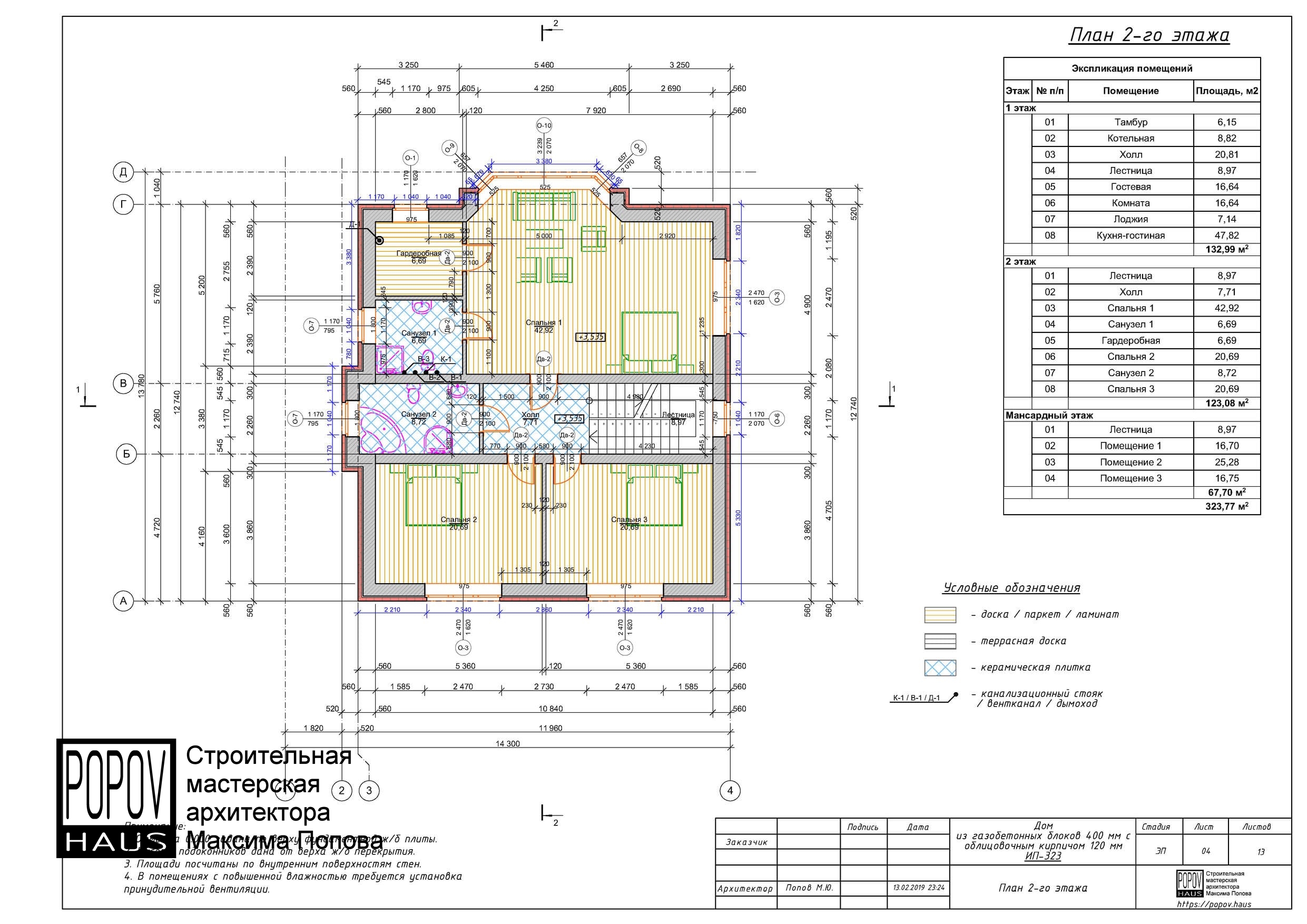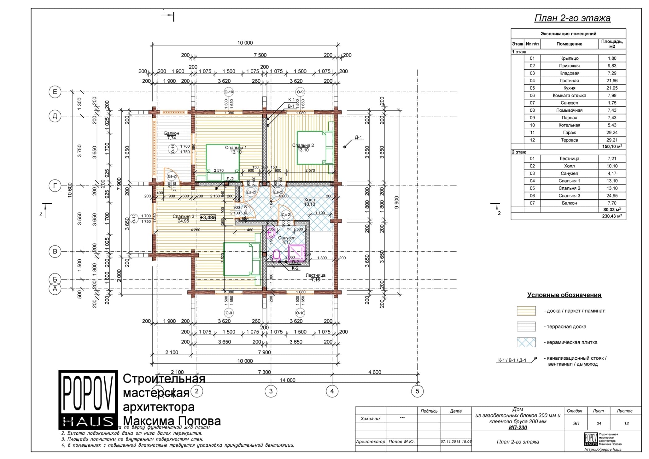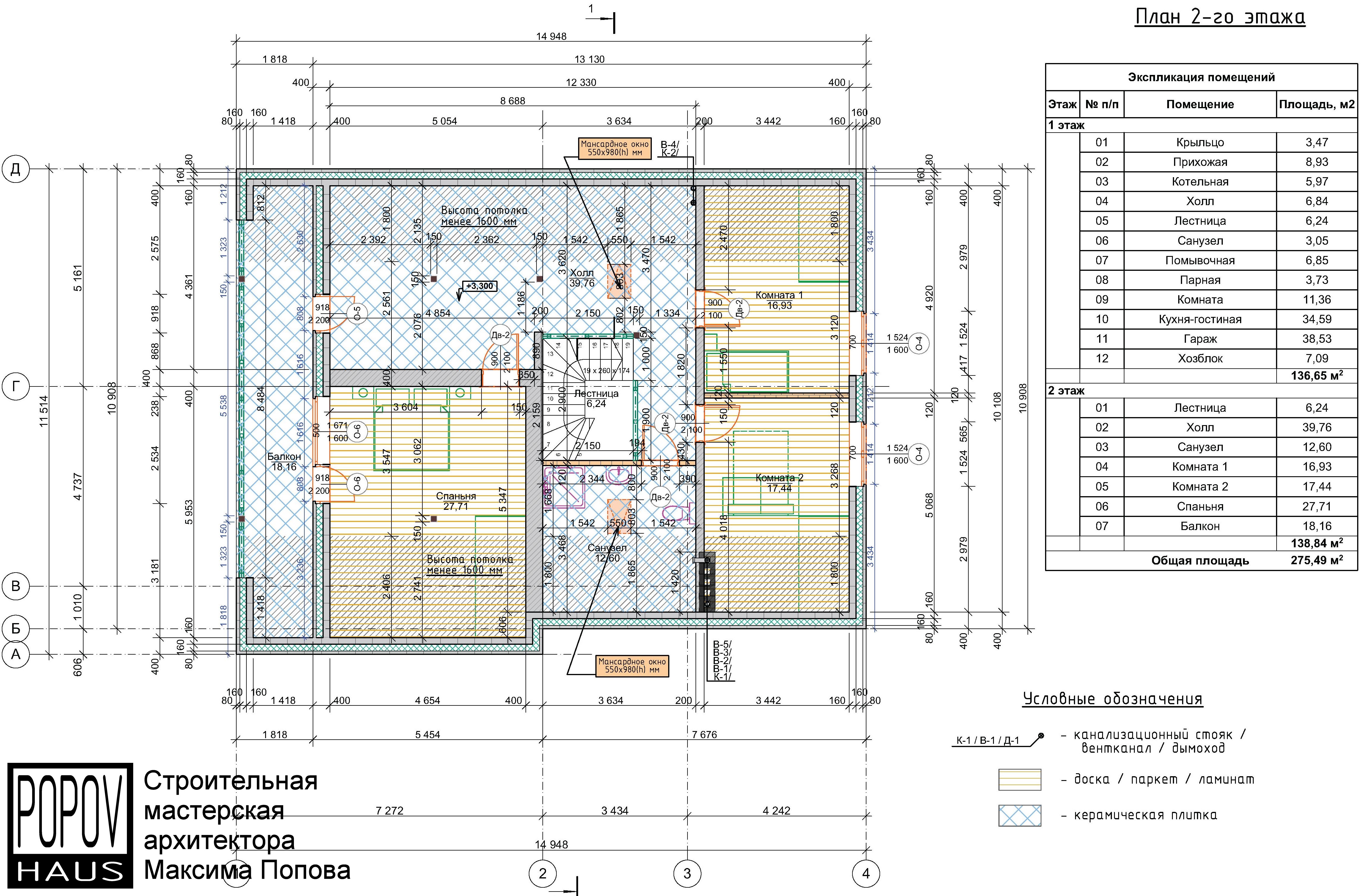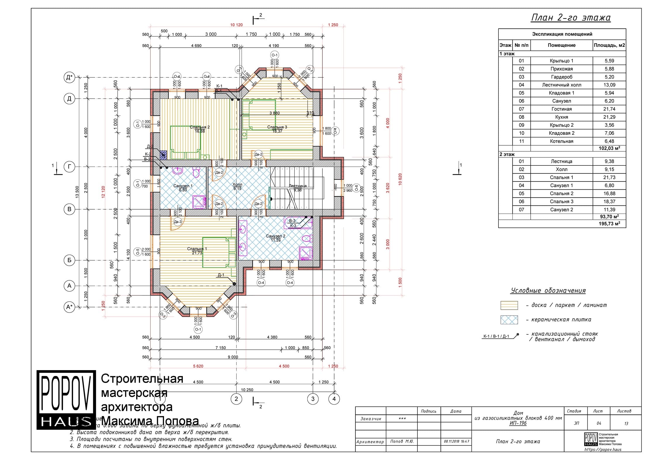 состоящий из 12-15 листов с чертежами всех основных параметров и характеристик строения: